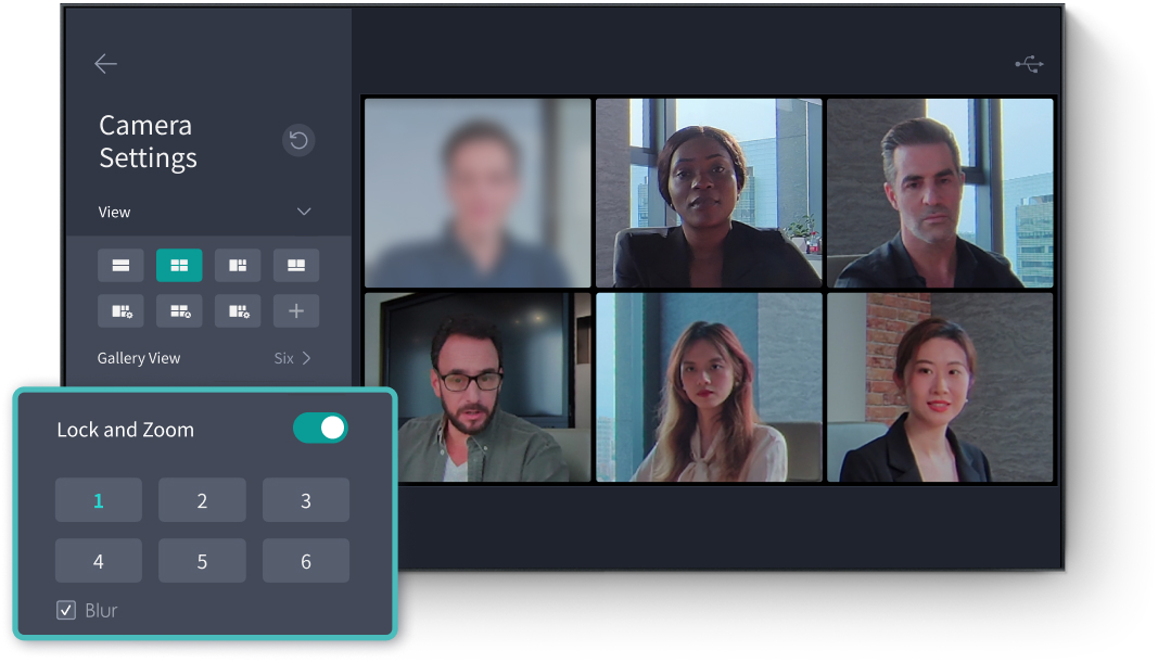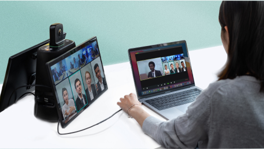 Connect Meeting Ultra to your computer with a USB cable to start a hybrid collaboration with auto-framing.