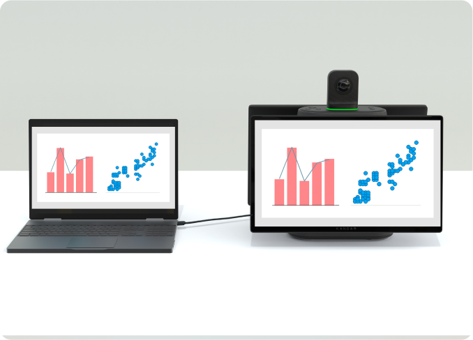 Supports HDMI outputs to two external screens, so everyone can see clearly in a large space. The screens on the device and external screens can display differently to share screens while managing the meeting.