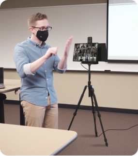 With AI motion detection algorithm, the speaker is smartly tracked and auto-framed. No need to sit fixed in front of the camera, the speaker can stand up and walk around to give a presentation.