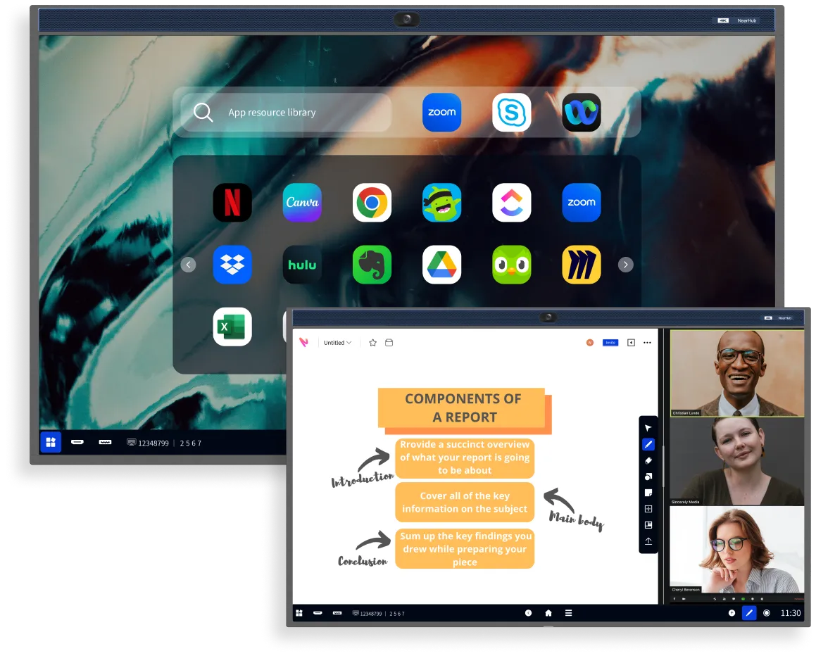 NearHubOS, built on the foundation of AndroidOS, is specifically designed to optimize touchscreen functionality. . You can enrich your ideas through annotations, view multiple windows using split-screen mode, and initiate meetings with a single click.
