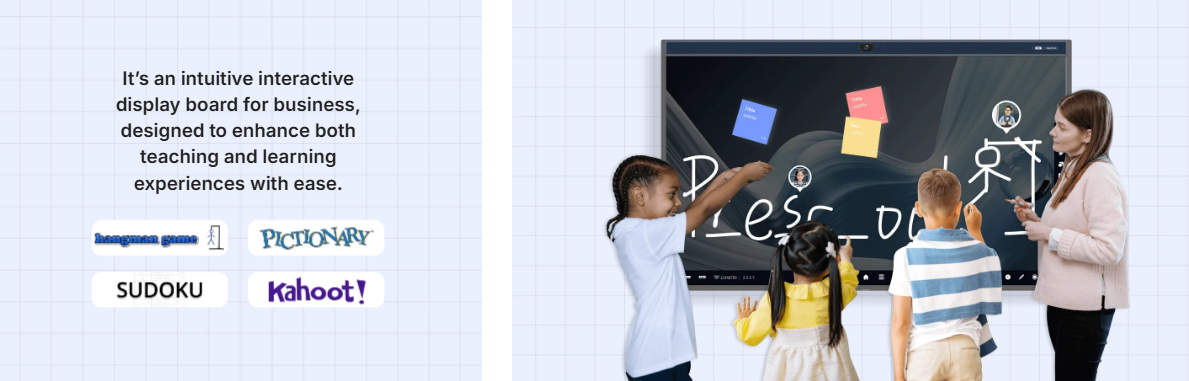 It’s a smart board for office that fosters hybrid collaboration, seamlessly switching between online and onsite environments.